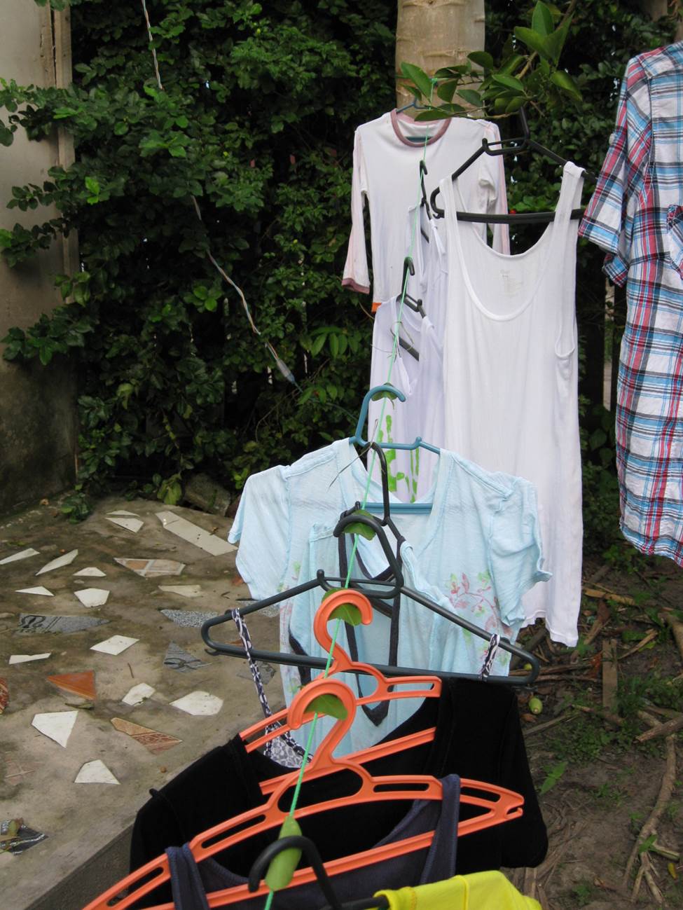 Ants use the laundry lines as thoroughfares. Maria Julia figured out that a lime leaf under every hanger cuts down on ant traffic because they don’t like the lime oil. She’s a genius.