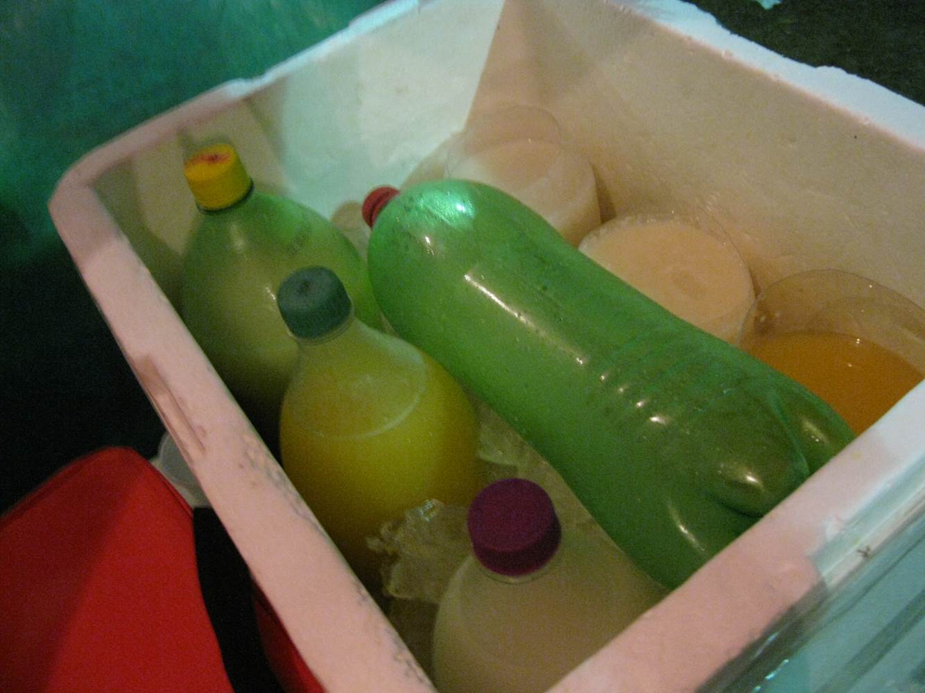 Recycled plastic is not for the Magi and ex-pat Santas alone. It also works well for holding and dispensing suco natural.