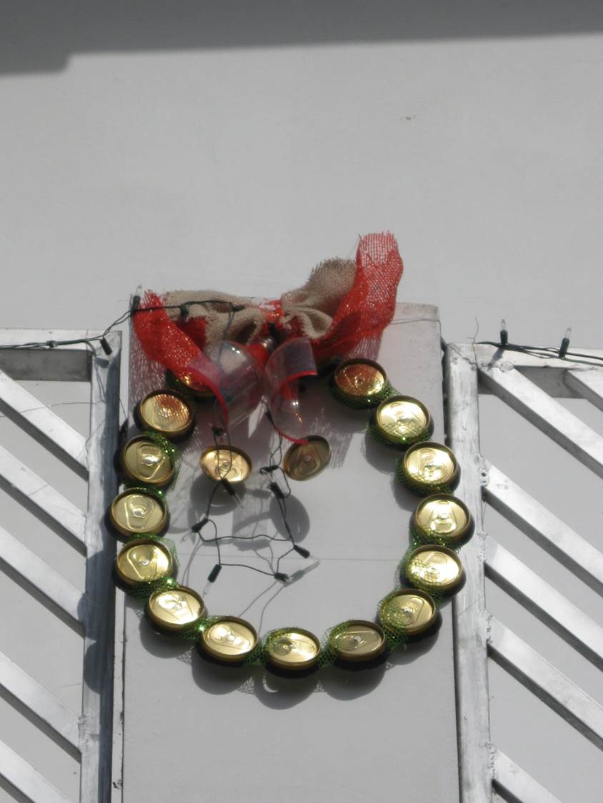 In addition to liking refrigerante, Portelenses enjoy beer. A Christmas wreath – what a great excuse to buy a case!