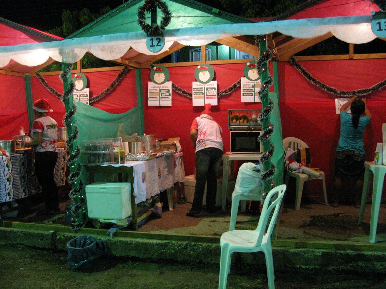 Part of the Christmas festivities in Portel involve food, as well they should. I “helped” my friend Maria Júlia (i.e., made incorrect change and spilled product) sell suco natural, juice made from local fruit: taperebá, cupuacu, and buruti.